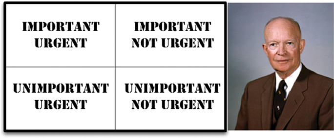 Consider President Dwight D. Eisenhower’s matrix of importance versus urgency (Figure 2.1). Of this matrix, Eisenhower said: